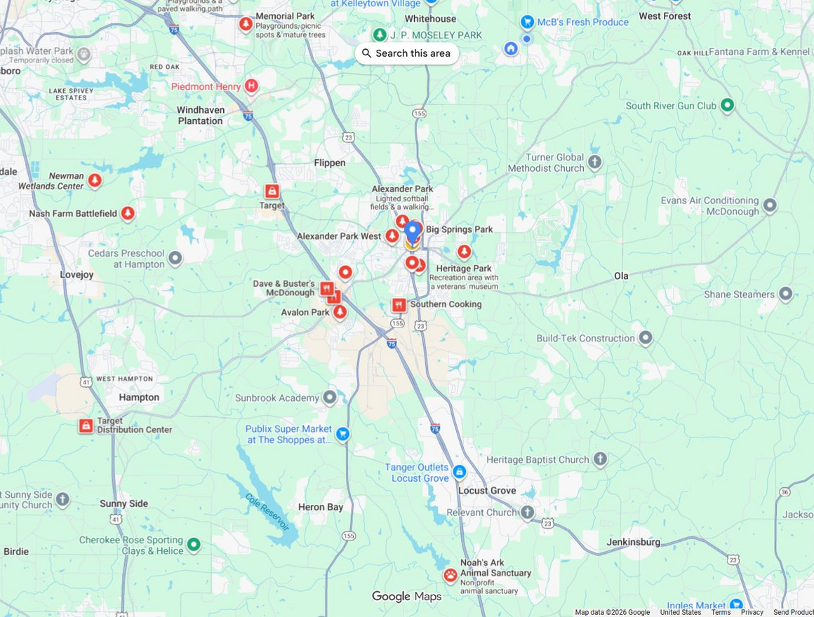 ★ ★ ★ ★ ★ ★ ★ ★ ★Free Parking: Park south of Sloan St., along Macon & Griffin Streets, at local churches (First Baptist Church of McDonough or McDonough First United Methodist), or at the city deck behind the courthouse – all free & convenient.